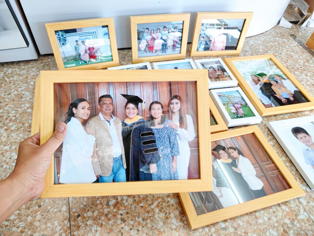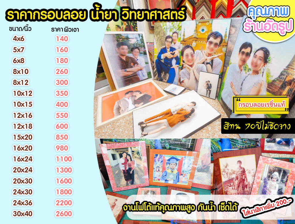 กรอบรูปเคลือบน้ำยาเราซิ่น หายากแล้วในสมัยนี้ งานจะถูกเคลือบด้วยน้ำยา ทำให้รูปมีความเงางามเหมือนกับใส่กระจก แข็งแรงน้ำหนักเบา จะสวยทนกว่าการเคลือบเย็นกาวพลาสติก