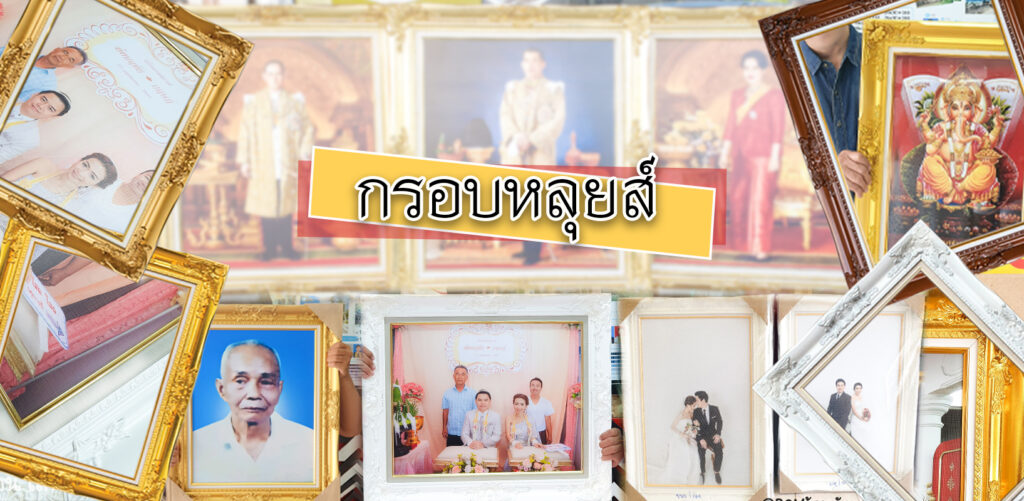 มีกรอบรูปให้เลือกมากมายหลายแบบ เช่น กรอบทองหลุยส์ ใส่รูปมงคลต่างๆ กรอบรูปแบบคลาสสิค โมเดิลเรียบหรู ขอบไม้หนาๆ ใหญ่ๆ ก็รับออกแบบนะคะ
